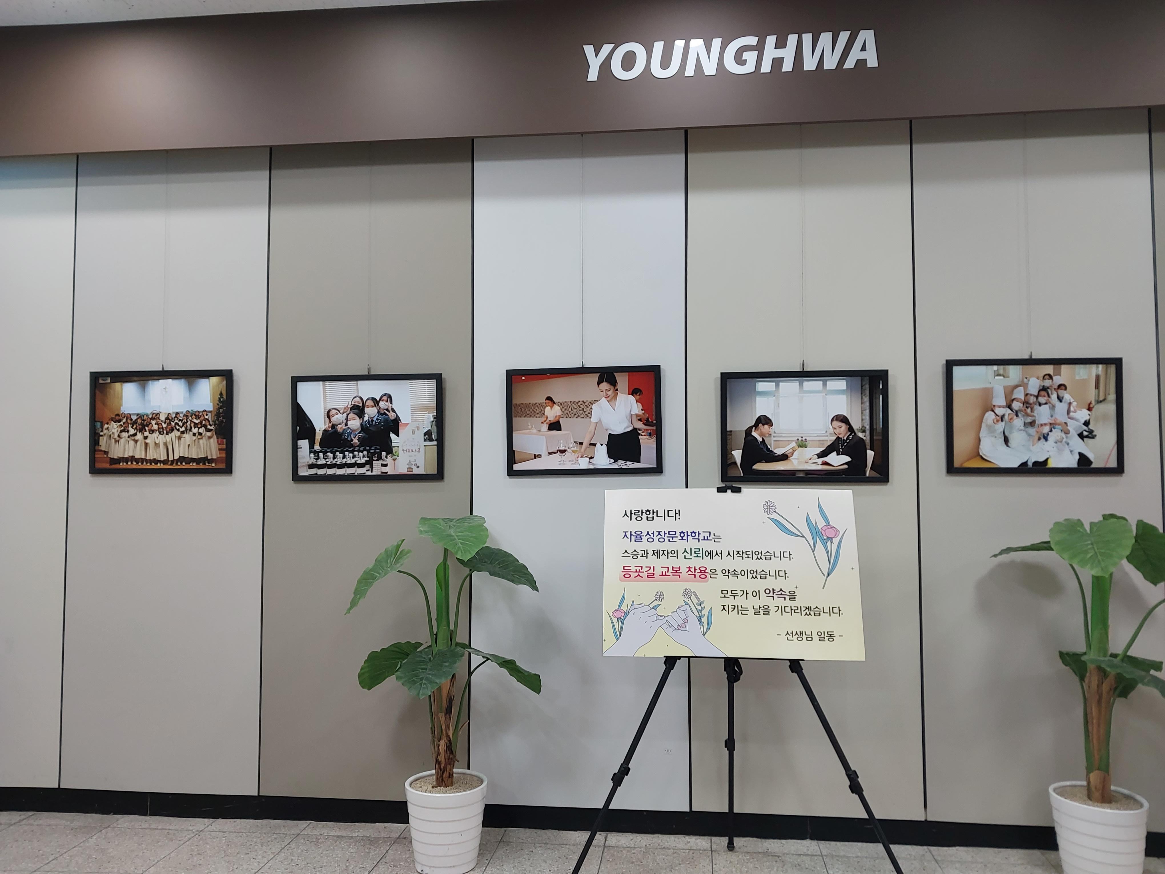 나는 < 인천여상 >과 < 영화여자실업학교 > 두 곳 중에서 당시 정부정책으로 관광산업이 미래에 비전이 있다고 생각되어 모교를 선택했다.