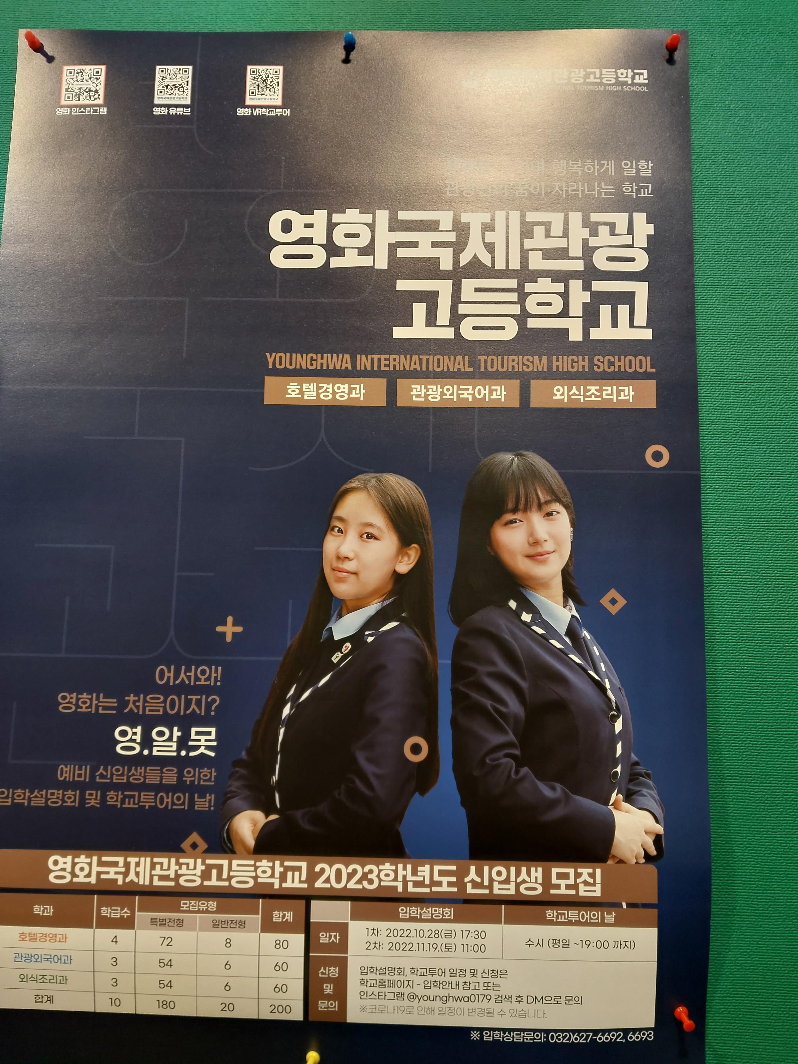 인천광역시에 소재한 < 영화국제관광고등학교 >는 1966년 < 영화여자실업학교>로 출발했다.