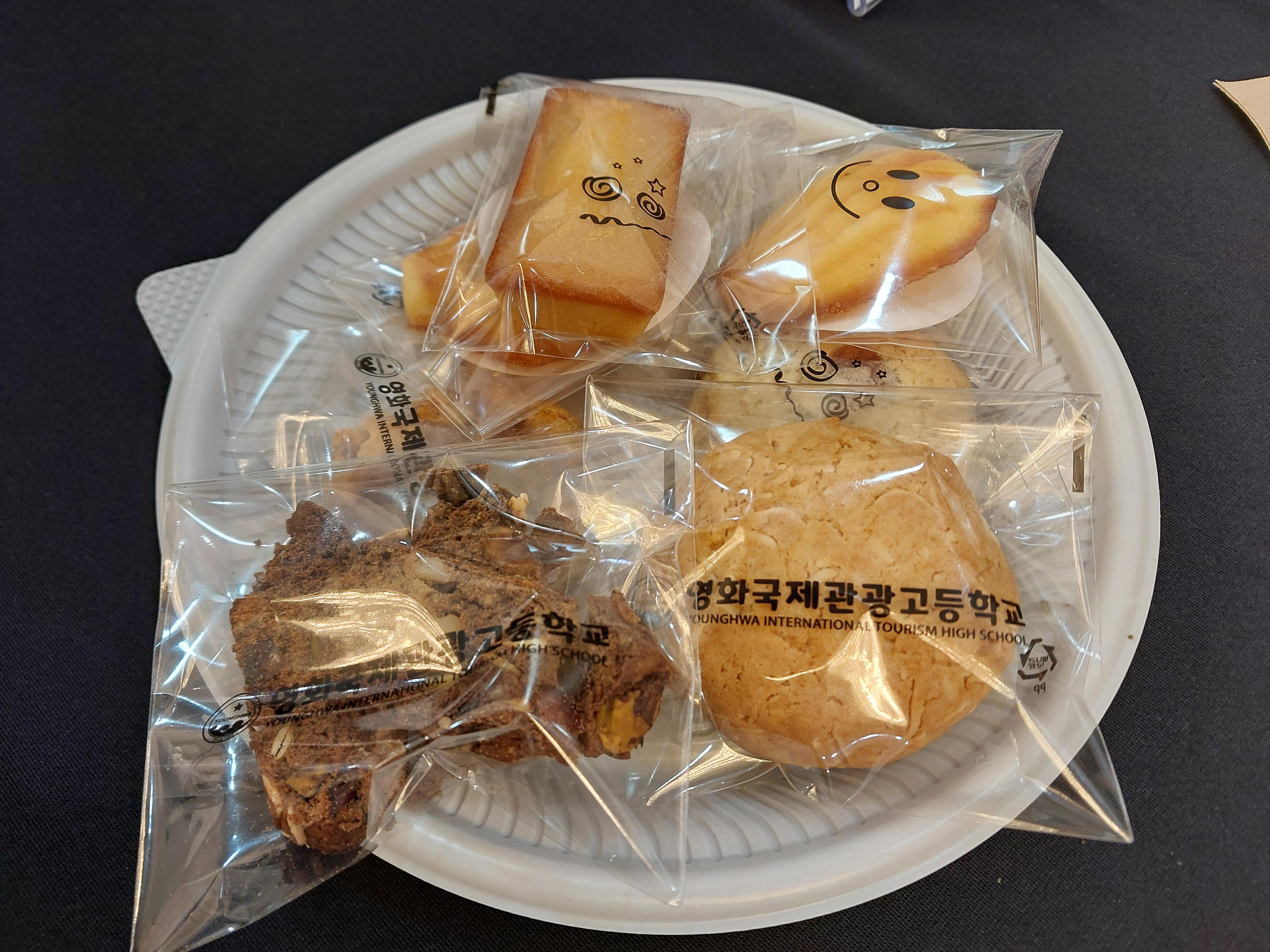 올해는 맞춤 도시락으로 식사를 하고, 재학생들이 직접 만든 원두커피와 비스켓을 준비했다.